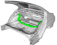报告显示,该车身的静态扭转刚度为26000Nm/°,比上一代产品的刚度足足提升了10000Nm/°,作为一款轴距2.8m的钢质车身,应该说这个刚度值的确是个标杆,刚度的提升主要通过改善刚度敏感位置的设计,是包裹架、轮罩与后地板连接位置,以及发动机舱等位置,见图1。