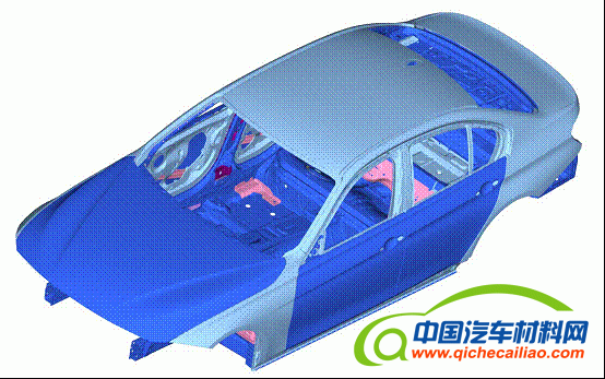 图3为白车身用材示意图(零件的用材的类型用RGB颜色代码加以区分):