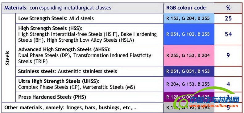 图4白车身用材分类