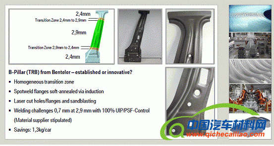 该车型的热成型的也只达到3%,但是在B柱热成型采用与TRB(图6)结合的新技术,也是目前热成型应用比较流行的趋势。