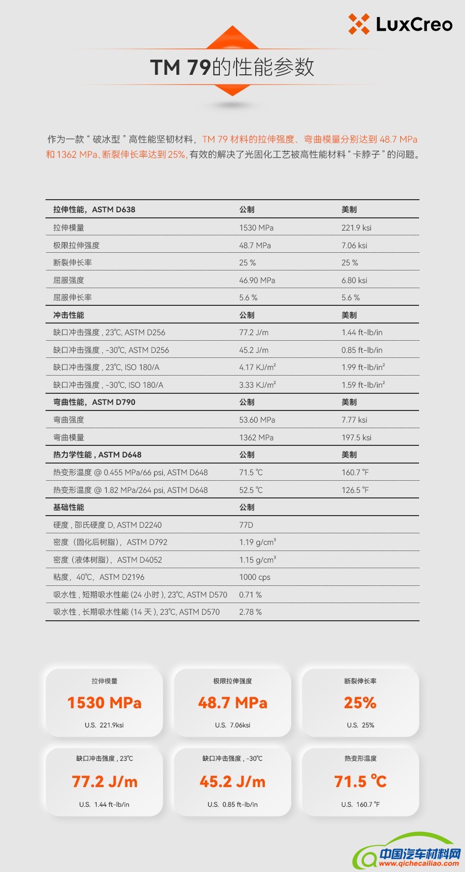 TM 79力学性能参数:拉伸强度48.7MPa, 弯曲模量1362MPa, 断裂伸长率25%