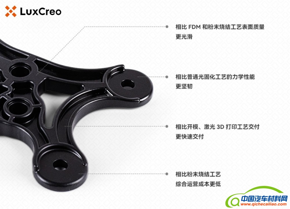 Lux 3+是采用LEAP™技术的生产级3D打印机,适用于快速、高精度打印原型件、测试件和小批量件,而此番推出TM 79正是基于LEAP™高速离型技术开发的高性能坚韧塑料。除此之外,清锋科技还开发了高弹、高精、透明、耐高温、阻燃等材料,搭配清锋科技3D打印智能工厂可满足工业、医疗、教育、科研等各领域打印需求。