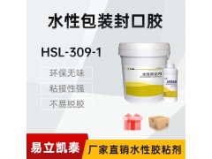 HSL-309-1水性包装封口胶用于磨光、过油彩盒粘合,开窗口PVC与纸的粘合,精装书本,同时适用于充皮纸裱塑胶盒,牛皮纸手挽袋贴合,手工/机器(辊涂、喷涂)上胶均可;初粘性强,流平性好。适用于月饼盒、礼品盒、烟盒、酒盒、药盒、牛奶箱、食品盒、鞋盒、信封等粘结;