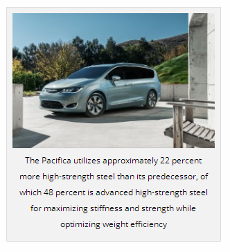 Much of that credit belongs to the extensive use of advanced, hot-stamped/high-strength steels, application of structural adhesives where necessary and an intense focus on mass optimization. The Pacifica utilizes approximately 22 percent more high-strength steel than its predecessor, of which 48 percent is advanced high-strength steel for maximizing stiffness and strength while optimizing weight efficiency – the first FCA US sliding door offering to blend advanced high-strength steels and material mass optimization to this extent.