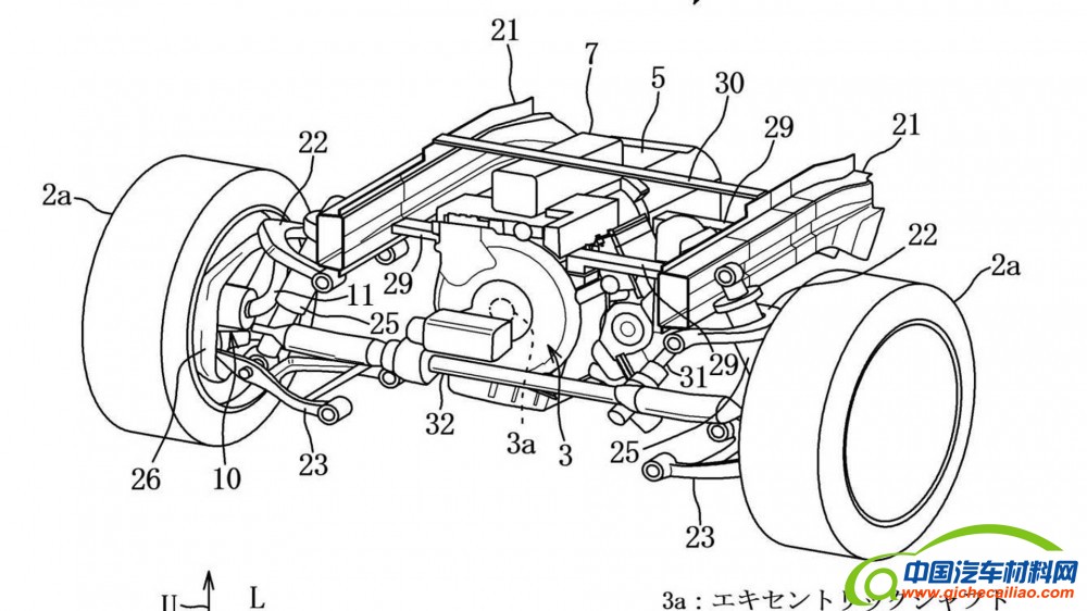 When setting off and during low-speed driving, the combustion engine and its electric motor drive the rear wheels. The in-wheel motors "generate an output only when a large output is required in the high vehicle speed range," according to the patent.