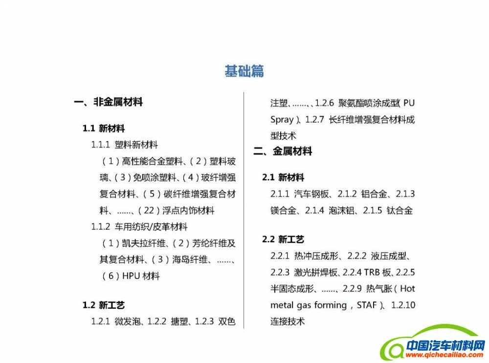 《汽车新材料新工艺应用技术手册》内容涵盖: