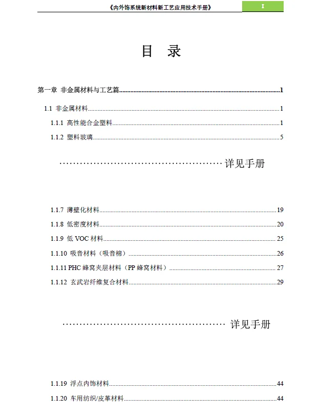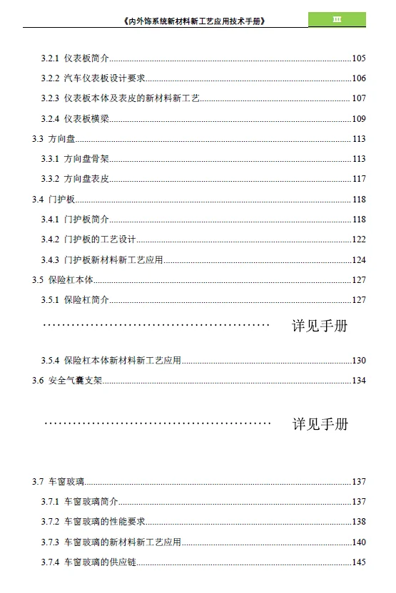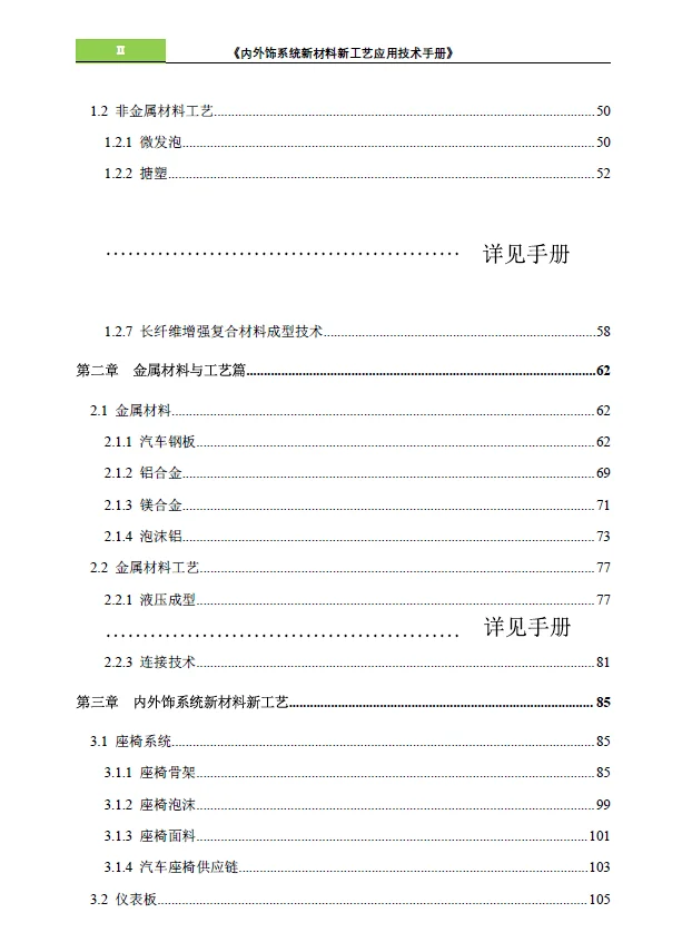 此手册主要内容为内外饰系统新材料新工艺应用,为 《汽车新材料新工艺应用技术手册》的分册。