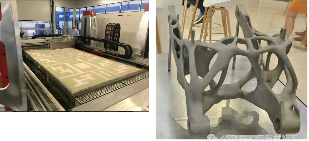 冷无机IOB技术降低能耗40%且零VOC排放;VXMB19陶粒砂3D打印砂型耐受1600℃高温,免除抛丸处理工序。随着VX9000【9m×7m×1m】等大型设备的应用,该技术正加速向电池包下壳体等大型结构件领域拓展,推动新能源汽车铸件向"无模化"深度转型。
