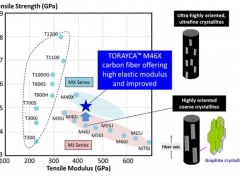 日前,日本东丽宣布已成功开发出高模量碳纤维Torayca M46X,其拉伸强度较已有的Torayca MX系列产品大幅提高约20%,且拉伸模量相当。 通常,碳纤维的拉伸模量和强度之间存在此消彼长的关系。在保持拉伸模量超过350GP