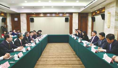 图为重钢集团与韩国浦项举行高层座谈交流时的情景