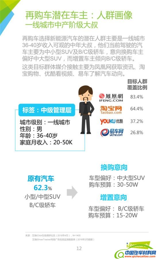 2015年是中国新能源汽车爆发元年,乘用车完成销量20.7万辆,增势迅猛;各大车企和互联网巨头争相布局,行业前景将持续向好。本报告从多个维度深入分析新能源汽车潜在车主的购买偏好以及人群画像,从车主的驾驶行为和触媒行为切入,力图找到最为精准的营销痛点。