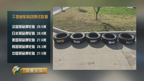 在这次测试中,中国品牌的轮胎比法国品牌的轮胎,少了两米,比日本轮胎少了0.5米,这就意味着刹车之后,中国品牌的轮胎所造成的事故概率要小得多。