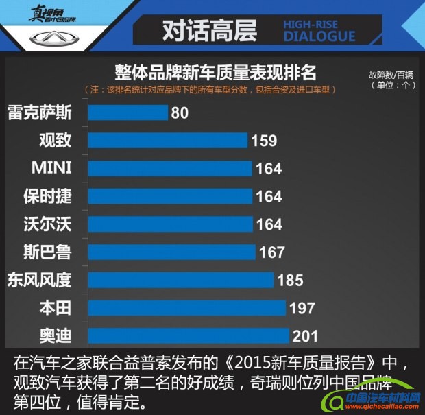 回顾近10年中国品牌的发展,尹同跃首先肯定了中国品牌的发展成果,“这十年当中,很多人在担心中国品牌的发展,但实际上我们并不担心。因为我们和别人的距离在越来越近。”在2015年汽车之家联合益普索发布的《2015新车质量报告》中,奇瑞出资创立的观致汽车获得了所有品牌第二名的好成绩,超过了许多合资、进口品牌,而奇瑞也位列中国品牌第四位,让我们看到中国品牌在汽车产品质量上的努力和成果,同时也是对于奇瑞以及观致汽车努力建立质量体系的一个肯定。除了汽车质量之外,我们看到中国品牌近年来在技术、设计等等方面也在向海外品牌看齐,努力追赶,这些都是值得肯定的。