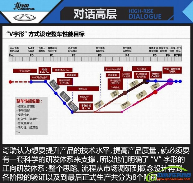 此外通过转型,奇瑞还投入了14亿人民币建立了自己新的研发试验中心并打造了9个体系以及 “V”字型正向开发流程,一层层验证,一层层分级,使得产品质量有所保证。