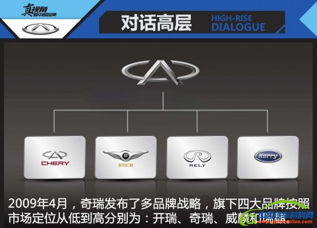 在有转型的想法后,奇瑞从2007年就开始做了一些调整,2009年4月奇瑞重新划分旗下品牌,奇瑞、开瑞、瑞麒、威麟这四个定位不同的品牌涵盖了当时奇瑞的产品线,奇瑞也以新的面貌出击。但分品牌战略从后期发展来看,并没有取得最后的成功。