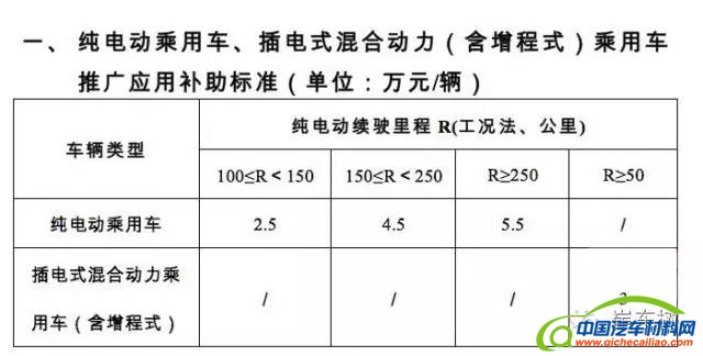 关于补贴标准,暂行办法规定,对于纯电动乘用车,纯电动续航里程大于100公里但小于150公里的车辆补贴1万元,纯电动续航里程大于150公里,每辆补贴3万元。对于插电式混合动力(含增程式)乘用车,纯电动续航里程大于50公里的车辆,每辆补贴1万元,若同时满足发动机排量小于1.6L等3项条件,再给予每车1.4万元补助。