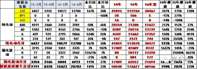16年1-4月的新能源乘用车总体销量6万台,同比增长12%,增速相对健康合理。其中纯电动车销售3.85万台,增长138%;插电混动销售2.17万台增长93%。