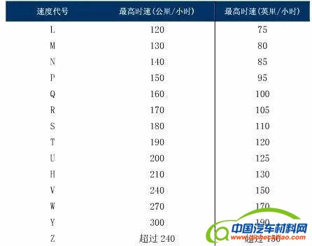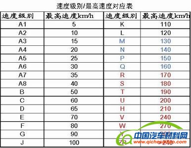 轮胎速度级别与最高速度对应表