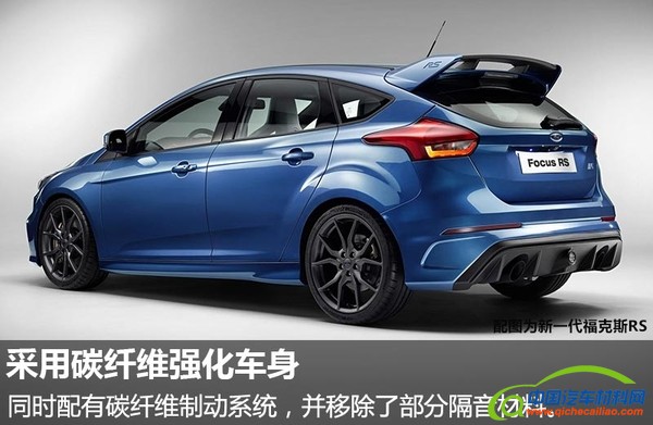 福特全新福克斯RS500将与全新标准版福克斯RS保持一致的车身风格,但将采用全新前后保险杠,进气口尺寸增加,通风口数量更多,有利于发动机散热。新车将使用碳纤维强化车身、强化铝底盘零部件、电子控制限滑差速器和碳纤维制动系统,并移除了部分隔音材料。