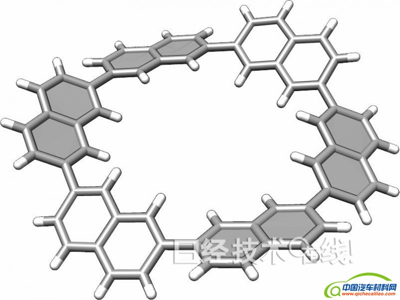 另外,此次研究还发现,使用粉末X射线衍射的方法,穿孔石墨烯分子的固体会形成与石墨相似的层状结构,并且可以使中央分子的微孔排成一线,形成微细、贯通的微孔结构。在石墨中,锂只在层叠起来的碳层的间隙中累积,而在穿孔石墨烯分子中,锂在纳米级的间隙和微孔两个地方累积,因此可以扩大容量。穿孔石墨烯分子可以使用非常普遍、产量很大的有机化合物“萘”制造。