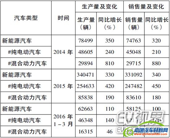 根据工信部的统计数据,2014年以来我国新能源汽车产消量及增长率变化如表1所示。