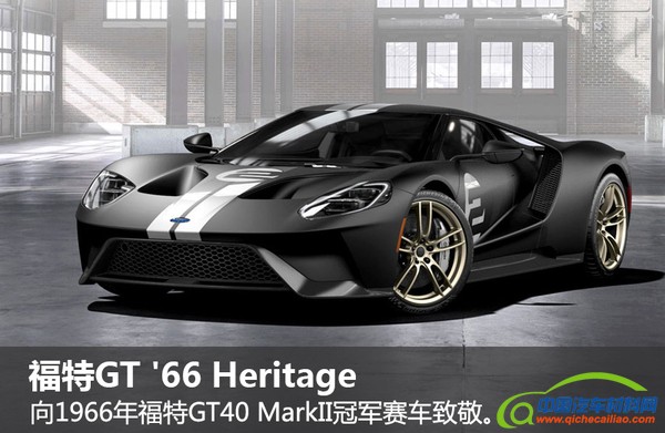 此外,福特还将发布一款特别版跑车——福特GT'66 Heritage,旨在向1966年问世的福特GT40 MarkII赛车致敬,同时为本届勒芒冠军庆贺。就外观而言,新车使用了黑色涂装,并提供磨砂漆版本,而20英寸的铝合金轮毂也采用了金色涂装,并且保留了冠军赛车所使用的车身编号。