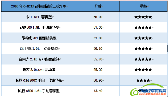 7月1日,中国汽车技术研究中心公布了2016年度C-NCAP碰撞测试第二批车型评价结果。在《C-NCAP管理规则(2015年版)》新规的严苛标准之下,比亚迪宋凭借出色的安全性能,以58.0分(满分61分,五星需大于等于54分)的优异成绩,超越本批次的逍客、昂科威、自由光以及上批次的锐界、撼路者等一众合资车型,荣膺新C-NCAP五星安全认证。