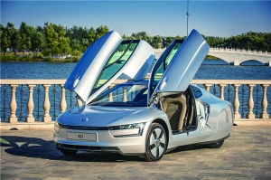 大众XL1是大众汽车开发的新型超节能车,搭载插入式混合动力系统,百公里油耗仅为0.92升。该车只有23%是由钢或铁制成,其余部分采用了碳纤维材料。车身使用了1.2毫米厚的碳纤维强化塑料,前挡风玻璃的厚度仅有3.2毫米。车身前后和侧面的防撞结构都采用铝合金材质,来保持车子的重量足够低。该车的重量为795公斤。