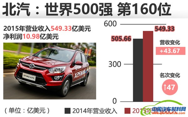 与去年在世界500强207名相比,今年北汽集团排名提升了47位。对未来的发展,北汽集团董事长徐和谊坦言:“现在世界100强中,有两家中国汽车集团进入前100名,起码北汽要成为中国汽车集团的前三名。就目前北汽集团的发展情况来看,十三五的目标达成基本没有问题。”