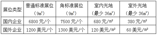 ①水上展区:国内企业:500元/㎡;国外企业:100美元/㎡