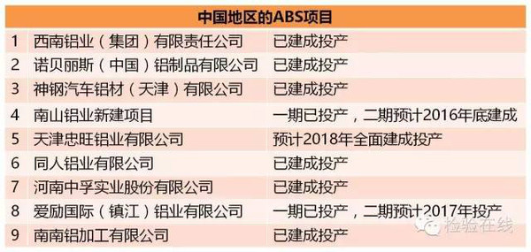 目前中国的ABS项目(已建成与在建的共9个)