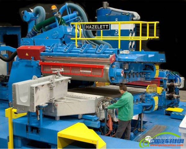 此法所能生产的合金及产品已有不少介绍,关于铸造机的结构也有一些报道,在此不再赘言,在此需指出的是:它不是一种万能的工艺,有一些合金如高合金化的2XXX系合金(如2024)、7XXX系合金(如7075)、含Mg含量大于6%的5XXX系合金、铝-锂合金、铝-钪合金等还不能生产更不能批量生产。该法也不能生产厚度大于15mm的板材,因为它可铸带坯的最大厚度50mm,而通常铸造带坯的厚度≤20mm;据哈兹雷特公司高级技术人员,用此法可以铸造冷轧ABS用的带坯。