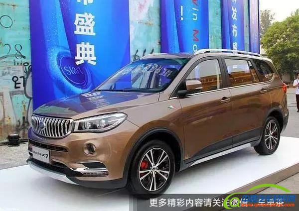 点评:斯威X7华晨鑫源打造的首款SUV车型,是一个全新的品牌。斯威X7前脸采用了类似于宝马样式的直瀑式进气格栅,显得有点霸气,新车将会搭载1.8L和1.5T两款发动机,其中1.8L车型将于8月底上市,而1.5T车型将于9月底上市。