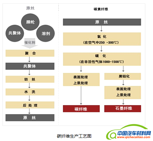 材料学中将碳纤维定义为由有机纤维经碳化及石墨化处理而得到的,一种含碳量在95%以上的高强度、高模量的新型纤维材料。既然碳纤维是纤维性材料,那么其不但应具有碳材料的固有性质,还要兼具纺织纤维的柔韧性和可纺性。因此,在制备碳纤维时不能简单地用碳或者石墨作原料直接合成碳纤维,而是需要将有机纤维与塑料树脂结合在一起炭化制得碳纤维。