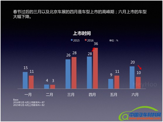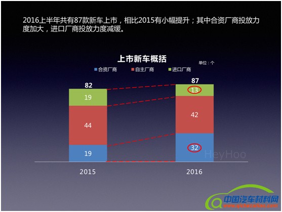 1.2016年上半年共上市新车87款,数量堪比同期新上市的手机数量。