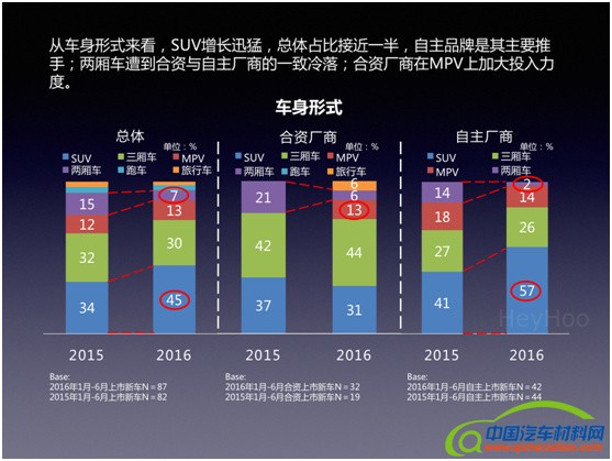 3. 两厢车受到合资与自主厂商的一致冷落,SUV则持续火爆。