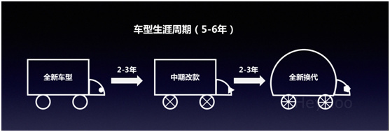 全新换代:一辆车在服役五到六年后会结束其生命周期,新一代产品会在外观、内饰、装备、动力等各方面进行全面升级。豪华品牌车型由于投资规模大,回收周期长,生命周期往往有7-8年。