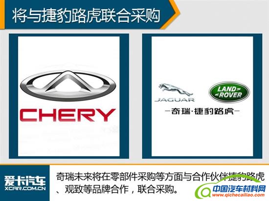 此外,奇瑞未来将在零部件采购等方面与合作伙伴捷豹路虎、观致等品牌合作,联合采购,并将用合作伙伴的管理体系制造相关的零部件等项目。对此,陈安宁在接受采访时表示,“我不是直接用捷豹路虎的零部件,而是用他们的标准来做。因为我要把捷豹路虎真正的零部件放到我的车上,消费者要花更多的钱。”