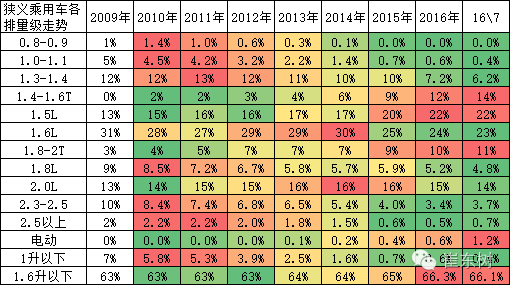 7、7月狭义乘用车排量小型化