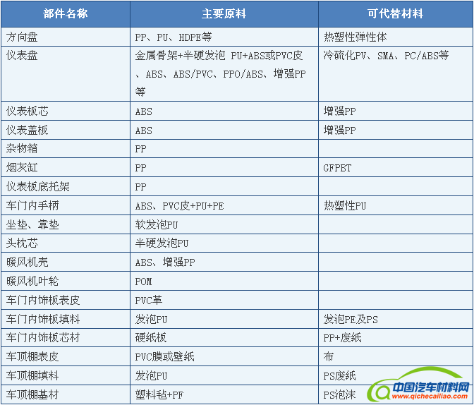 改性聚苯醚(MPPO)和ABS工程塑料及其合金材料主要应用于内外饰零部件,随着车型档次提高,工程塑料应用增加,ABS及其合金应用比例增加;