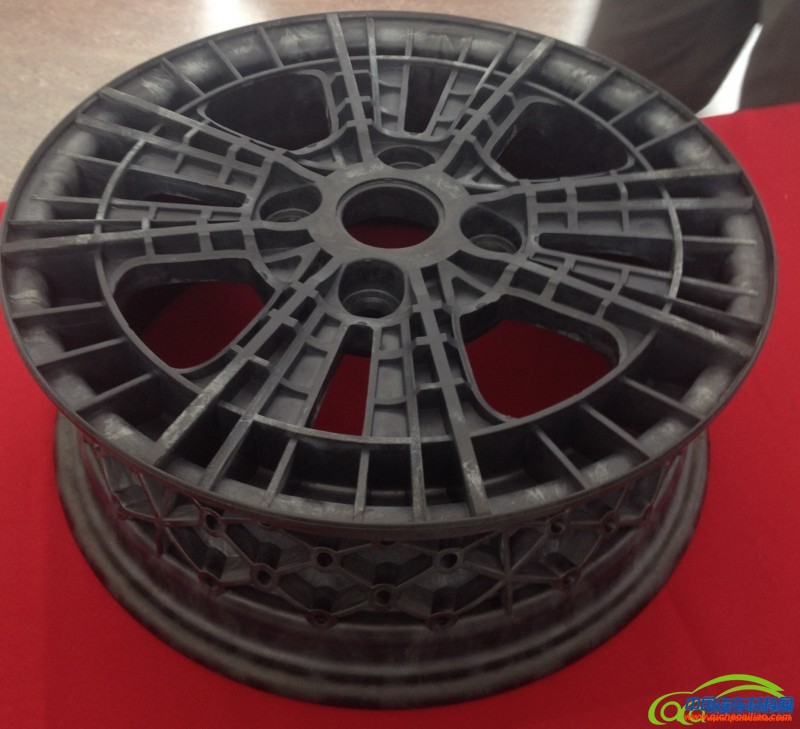 北京航空航天大学、北京纳盛通新材料科技有限公司、北京中材汽车复合材料有限公司自主设计研发的长碳纤维增强热塑性(尼龙)复合材料(LCFT)轮毂,与汽车铝轮毂相比可大幅减重40-60wt%,尺寸精度更高,抗疲劳、抗蠕变、耐热、耐环境性能等性能更加优异, 生产效率更高、成本更低,且可回收循环使用,该注塑工艺已在保险杠、发动机罩盖等非承力件大量使用。