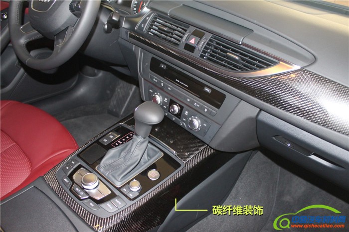 表面只喷涂一层清漆,可以清晰的看见内部的碳纤维丝束经纬或者斜线交叉排列,显得致密规整。将碳纤维复合材质应用到车尾扰流板,后视镜,车顶,仪表板,副仪表板,门芯板和方向盘等可视化较高的零部件上,营造出车辆科技运动的视觉效果。