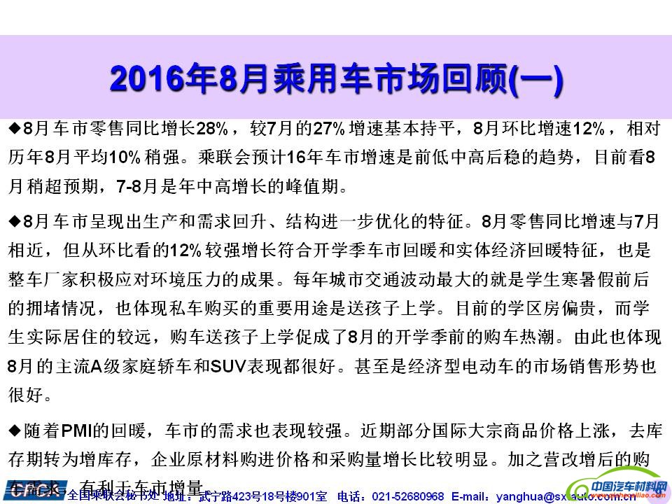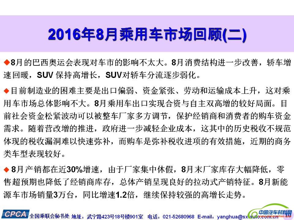 日期:2016-09-08 来源:乘联会 作者:中国汽车材料网