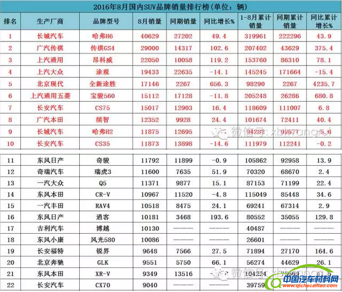 数据显示,2016年8月,国内SUV市场销量完成667,581辆,同比增长42.3%;
