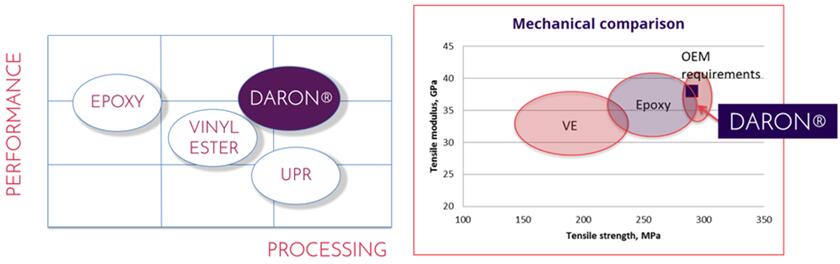 对一级供应商和OEM厂家而言,使用Daron®树脂制造复合材料部件意味着工艺稳健,产品性能稳定。最重要的是,稳健高速的生产过程带来系统成本的降低。