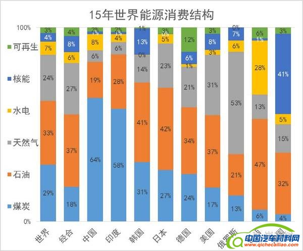 世界各国能源消费结构差异很大,中国的能源结构偏煤炭现象较严重,15年64%的能源是煤炭(国统局14年数据是66%,BP数据与国统局数据是合理衔接的,证明中国煤炭用量持续下降),而石油仅有19%,天然气也仅有6%。中国这样的能源结构有很大的改善空间,其中发展石油和天然气的消费应该是相对合理的选择。