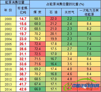 中国能源结构逐步改善,从00年-14年的煤炭消耗占比逐步下降,而05-07年的煤炭消耗的占比达到72.5%的高位,目前的改善到66%,效果很好。