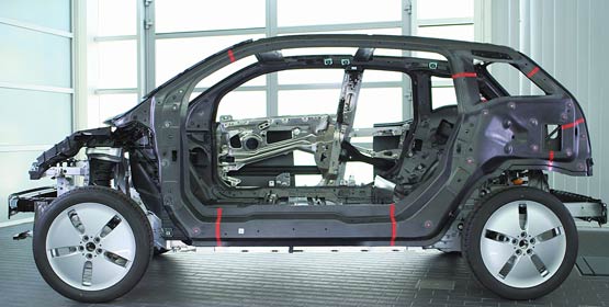 宝马目前采用碳纤维结合其他轻量化材料的方法,一方面可以实现减轻车身的目的,另一方面能降低成本。