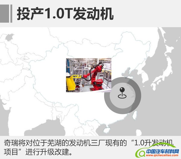通过芜湖市环保局了解到,奇瑞将对位于芜湖的发动机三厂现有“1.0升发动机项目”进行升级改建,用于生产1.0T涡轮增压发动机,年产能10万台,未来有望搭载到奇瑞汽车旗下的小型车上。