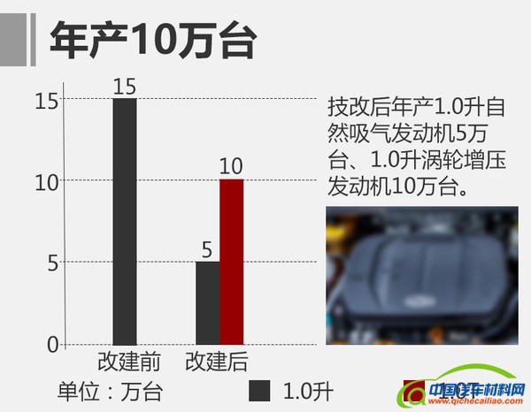 据了解,奇瑞1.0升发动机项目技改前产品方案为年产15万台1.0升自然吸气发动机,技改后为年产1.0升自然吸气发动机5万台、1.0升涡轮增压发动机10万台。同时1.0T发动机将与1.0升发动机共线生产,总产能仍为15万台。同时奇瑞1.0升涡轮增压发动机未来将满足国六排放标准。